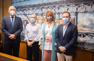 La presidenta de la Autoridad Portuaria de Huelva (APH), Pilar Miranda, acompañada por el director de esa misma institución, Ignacio Álvarez de Ossorio, han mantenido un encuentro con representantes de la Junta Directiva de la Asociación de Empresarios de la Construcción (AECO), encabezada por su presidente, Javier Mateo, con el objetivo de conocer los proyectos de futuro del puerto de Huelva a fin de que el sector pueda estar preparado para ser "competitivo y adecuar sus servicios a las necesidades derivadas de la actividad portuaria".