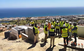 Tras los trabajos de excavación y la adecuación del camino de acceso, y el hormigonado de la cimentación y del muro principal de contención, en estos días se está ultimando la estructura del edificio, y en los próximos días se colocará la cúpula sobre la que se instalará la linterna.