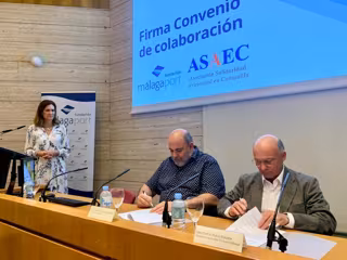 El presidente de la Fundación Málagaport, Carlos Rubio Basabe y el presidente de la Asociación Solidaridad Asistencial en Compañía (Asaec), Antonio Paneque, han firmado un Convenio de Colaboración por el que las empresas de la Comunidad Portuaria pueden incorporarse a un programa solidario de distribución gratuita de productos perecederos, tales como frutas y hortalizas, entre otros.