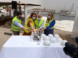 La consejera de Fomento, Infraestructuras y Ordenación del Territorio, Marifrán Carazo, ha puesto este lunes, junto a la consejera de Agricultura, Ganadería, Pesca y Desarrollo Sostenible, Carmen Crespo, y el alcalde de Roquetas, Gabriel Amat, la primera piedra de las obras de integración puerto-ciudad del Puerto de Roquetas.