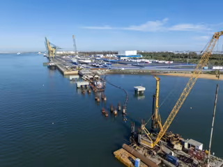 Las obras de construcción de una nueva doble rampa ro-ro en el Puerto de Huelva. - PUERTO DE HUELVA