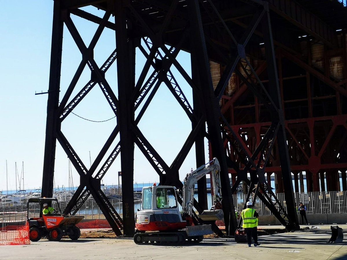La Autoridad Portuaria de Almería (APA) ha iniciado la segunda fase de las obras de restauración de la plataforma de acceso del Cable Inglés que permitirán crear un paseo peatonal con mirador sobre la estructura del viejo cargadero de mineral, para lo que se ha comenzado a acometer el refuerzo y protección de la estructura metálica.