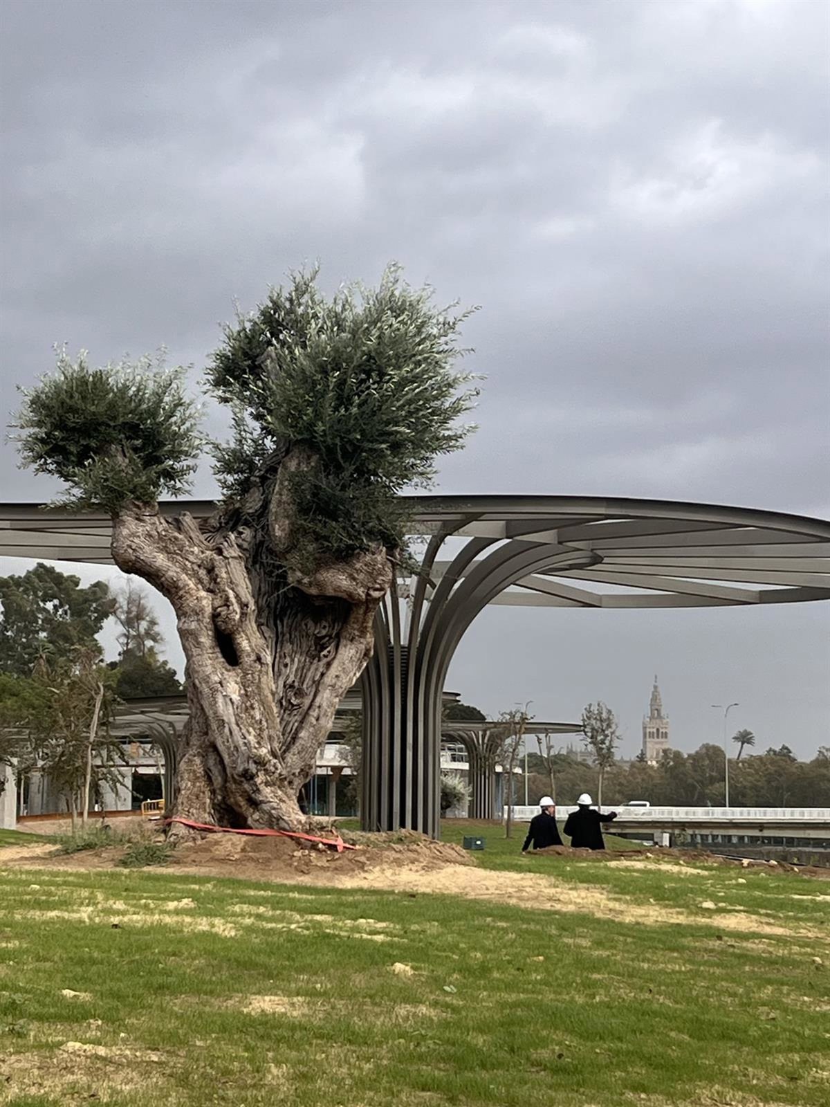 Una representación de la Autoridad Portuaria de Sevilla, encabezada por el presidente de la entidad, Rafael Carmona, ha comprobado este martes el grado de ejecución del proyecto 'Jardín de las Cigarreras', que tendrá entre sus atractivos un ejemplar de olivo de más de 900 años de antigüedad trasplantado hace unos días. Este árbol ha sido datado entre 1100 y 1150 d.C. por el técnico experto en cultivo de olivar Luis Tomás Alcaraz, que ha determinado que pudo plantarse en "época de dominación almorávide" en una zona cercana al municipio portugués de Bejar.