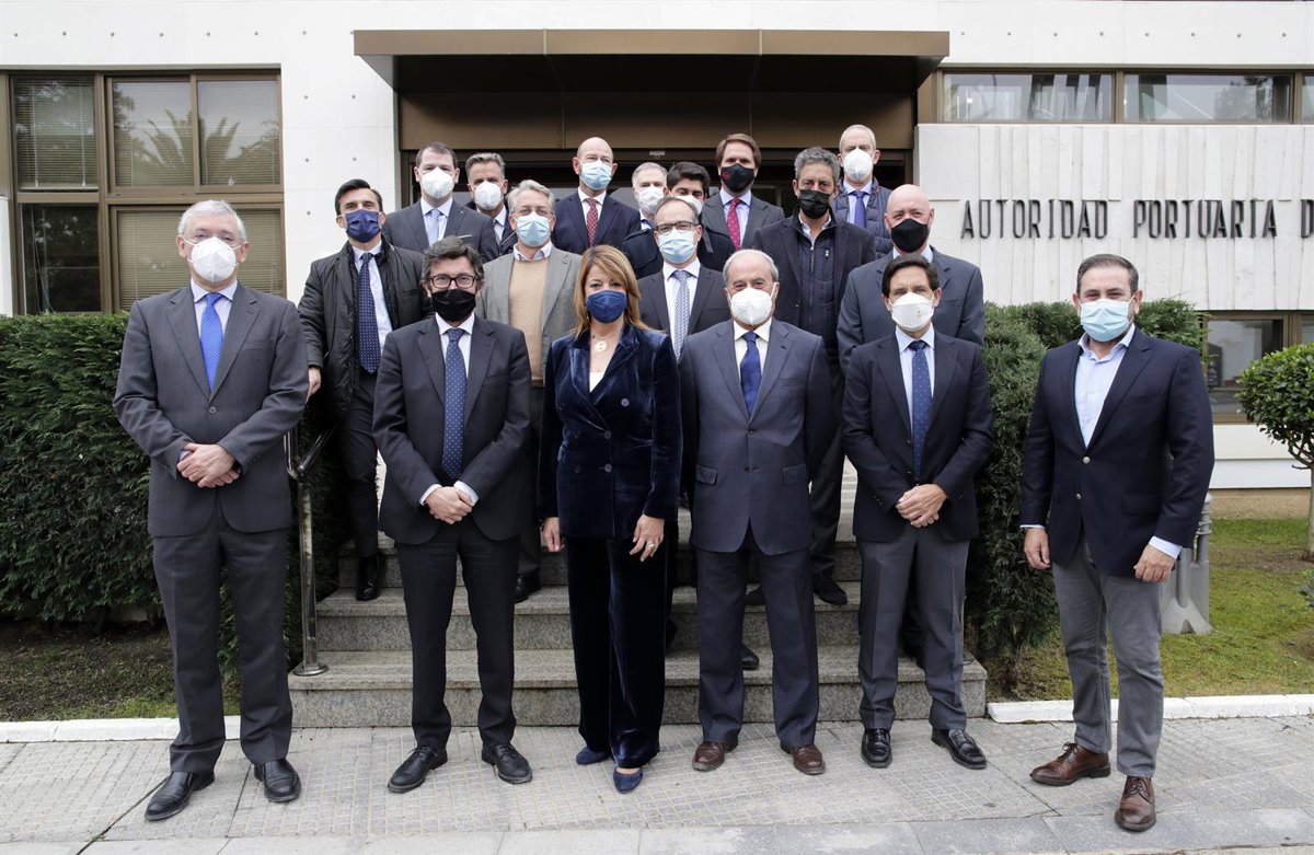 El presidente de Puertos del Estado y la presidenta del Puerto de Huelva han estado acompañados por el director del Puerto de Huelva, Ignacio Álvarez-Ossorio, y el jefe del Área de Servicios a la Comunidad Portuaria en Puertos del Estado, Jaime Luezas.