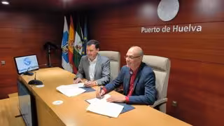 El presidente de la Autoridad Portuaria de Huelva, Alberto Santana, y el presidente de Resurgir, Antonio Gómez, han firmado la renovación del convenio con la que desde hace años el puerto onubense viene prestando ayuda al Economato Social para ayudar a las familias "frágiles" de Huelva.