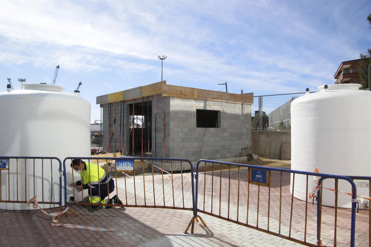 Para ello, se está construyendo una instalación provista de un aljibe donde se aloja el agua de escorrentías que luego, tras el preceptivo tratamiento, pasa a dos depósitos, cada uno con capacidad para 8.000 litros. El aljibe, también llamado tanque de tormentas, es una infraestructura de la red de recogida de aguas pluviales, que puede albergar hasta 27.000 litros. El bombeo del aljibe a los depósitos se hará mediante energía solar.