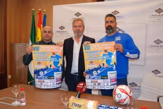 El presidente de la Autoridad Portuaria de Motril, José García Fuentes; el concejal de Deportes motrileño, Daniel Ortega; y el representante de la asociación organizadora Miguel Sánchez han aunado sus mensajes durante la presentación del torneo para animar a la asistencia.