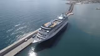 Foto aérea de un crucero atracando en el muelle Dique del Puerto de Motril (Granada) - PUERTO DE MOTRIL