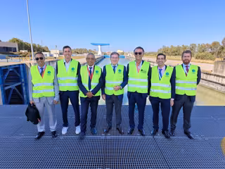 La reunión ha continuado con una visita a las instalaciones portuarias, donde la delegación marroquí ha conocido la dársena de Batán, el distrito logístico del Puerto de Sevilla, que constituye el principal nodo multimodal (buque-tren-camión) del Sur de la península. A la reunión y posterior visita han asistido tanto Rafael Carmona como el jefe de Desarrollo de Negocio, Manuel González.