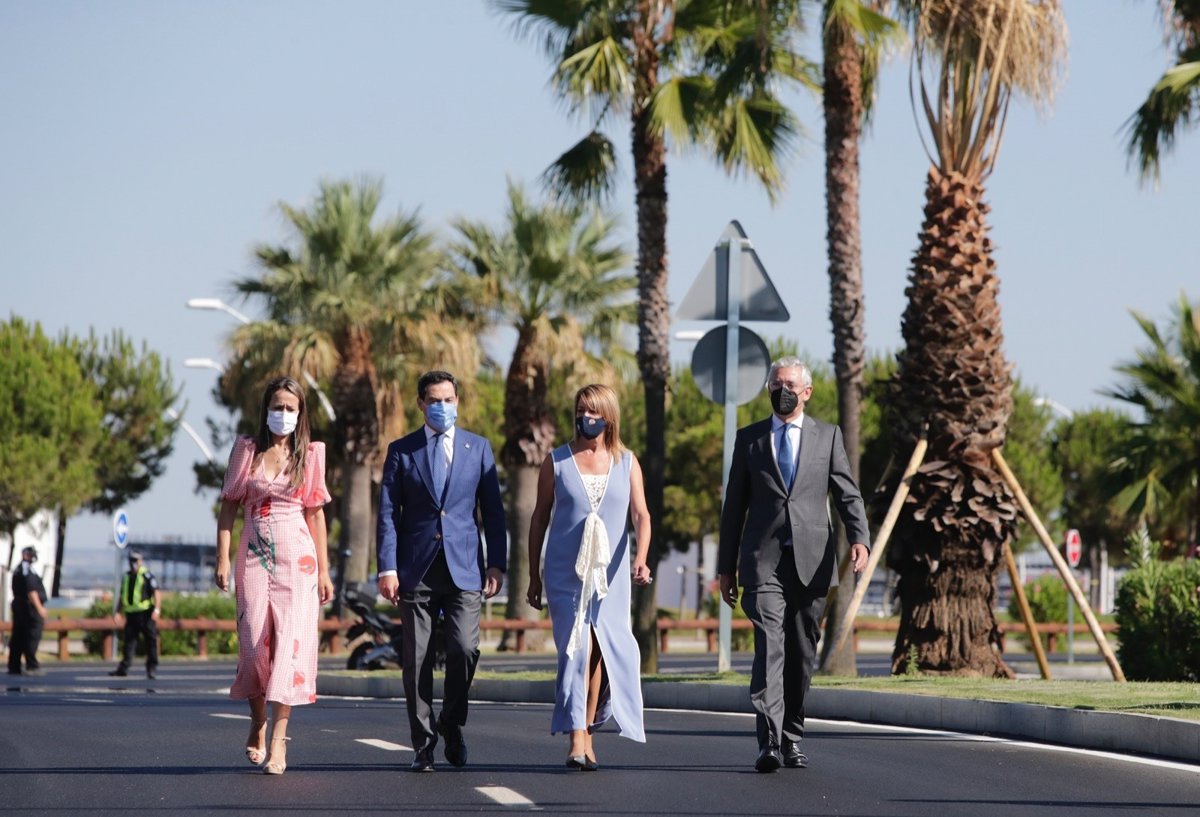 El presidente de la Junta de Andalucía, Juanma Moreno, ha presidido este miércoles la apertura a los ciudadanos de la Avenida Francisco Montenegro del Puerto de Huelva tras su remodelación, en la que la Autoridad Portuaria de Huelva ha acometido una inversión superior a 11,1 millones de euros en un tramo de cinco kilómetros, comprendido entre el Muelle cargadero de Río Tinto y el Monumento a Colón.