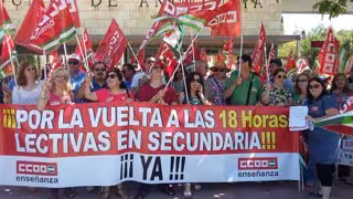 Unos 200 delegados sindicales de CCOO han protestado este miércoles ante la sede de la Consejería de Educación de la Junta de Andalucía, en el edificio Torretriana de la Isla de la Cartuja de Sevilla, para reclamar el retorno a las 18 horas lectivas semanales en Secundaria, Formación Profesional y Enseñanzas de Régimen Especial, según ha precisado a Europa Press el secretario general de la Federación de Enseñanza de CCOO-A, José Blanco.