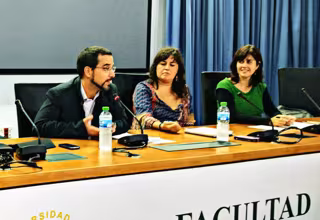Los primeros candidatos de la lista de Podemos por Sevilla para las elecciones al Congreso, Sergio Pascual y Auxiliadora Honorato, participaron en la apertura de las jornadas 'La función pública a debate' en la Facultad de Derecho de la Universidad de Sevilla, junto a la también candidata Marta Domínguez y la parlamentaria andaluza Begoña Gutiérrez.