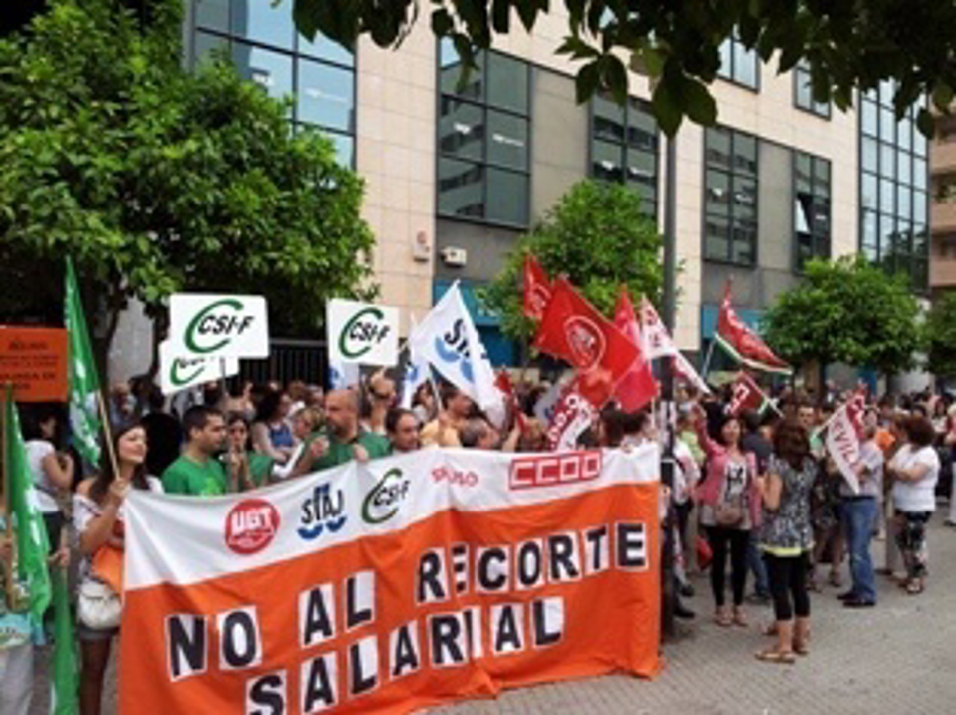 La concentración se enmarca en el calendario de protestas que se sucederán durante todo el mes de junio ante los edificios judiciales andaluces, convocados por la plataforma sindical en defensa de la Justicia y contra los recortes salariales constituida por los cinco sindicatos con representación en la Administración de Justicia andaluza, como son STAJ, CSIF, CCOO, UGT y USO.