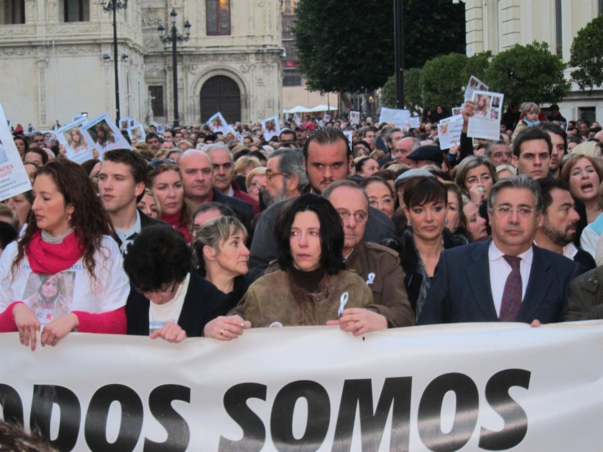 La manifestación, según lo previsto, ha arrancado en torno a las 18,00 horas de la Plaza Nueva con destino a los juzgados de Sevilla, y ha estado encabezada por los padres de la joven, Antonio del Castillo y Eva Casanueva; el abuelo, José Antonio Casanueva, y el alcalde de Sevilla, Juan Ignacio Zoido (PP), que, con anterioridad a la marcha, ha recibido a los padres junto con todo el equipo de gobierno para transmitirles su apoyo y solidaridad en estos momentos. Todos ellos han portado una pancarta en la que se podía leer 'Todos somos Marta'.