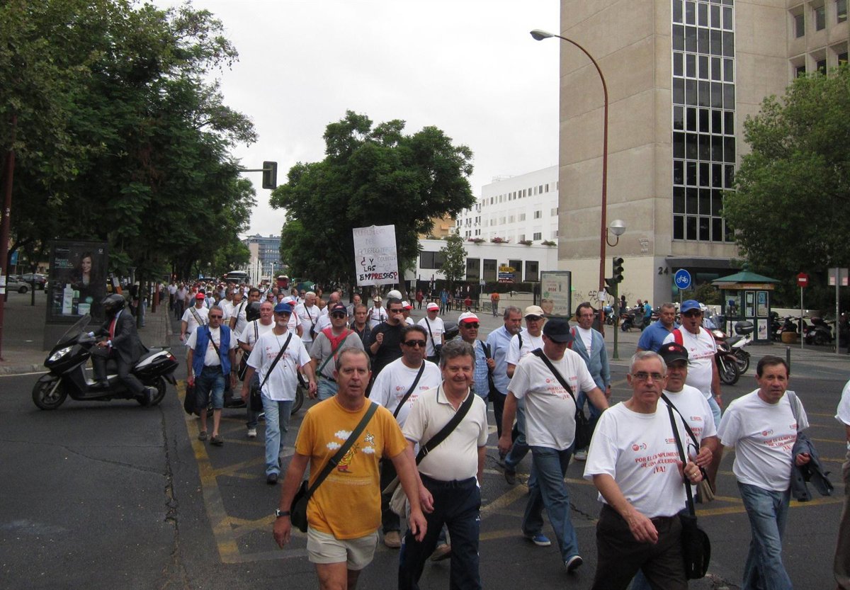 La primera ha sido ante la sede del Gobierno autonómico, donde han expresado su "malestar" por la falta de desarrollo de los acuerdos firmados el 14 de febrero de 2011 que suponían la extinción de la compañía con el compromiso de un plan industrial que atrajera nuevos proyectos así como de un apartado social por el que se preveían casi 800 prejubilaciones así como formación y recolocaciones.