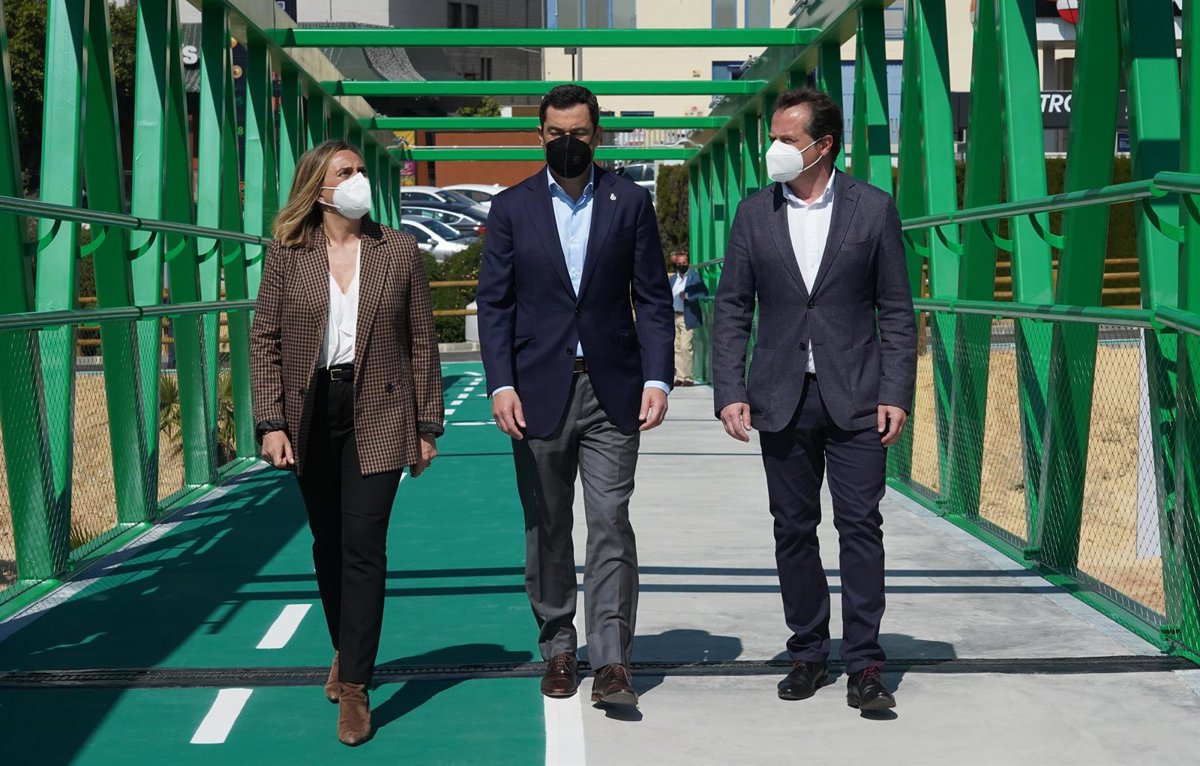 El presidente de la Junta de Andalucía, Juanma Moreno, ha encabezado la inauguración de la pasarela junto a la consejera de Fomento e Infraestructuras, Marifrán Carazo; el alcalde de Mairena del Aljarafe, Antonio Conde, y el delegado del Gobierno de la Junta en Sevilla, Ricardo Sánchez.