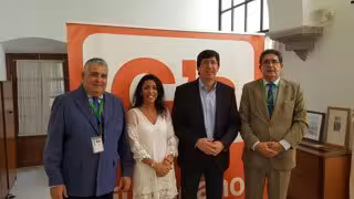 El presidente del Consejo Andaluz de Colegios de Abogados, José Pascual Pozo, y el decano del Colegio de Abogados de Sevilla, José Joaquín Gallardo, han mantenido este jueves sendas reuniones en el Parlamento andaluz con el presidente del PP-A, Juanma Moreno, y con el presidente y portavoz parlamentario de Ciudadanos Andalucía (C's), Juan Marín, a quienes han expuesto la situación de las retribuciones de los servicios de Justicia gratuita en la comunidad autónoma.