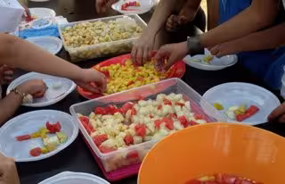 Del mismo modo, en la zona centro se organizó para los jóvenes una gran cena basada en brochetas de pavo con verduras y una ensalada de la huerta gigante, para concienciar a la juventud de que "es muy rápido y sencillo cenar de forma sana, y que la comida rápida también puede y debe ser saludable si se eligen bien sus ingredientes".