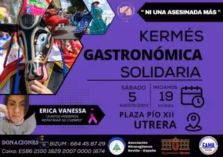 La Asociación Nicaragüense Sevilla-España ha organizado este sábado varias actividades gastronómicas y culturales con el objetivo de recaudar hasta 6.000 euros con los que poder costear la repatriación del cádaver de la joven nicaragüense, V.R.A, asesinada presuntamente a manos de su ex pareja, ya en prisión, el pasado 31 de julio en el municipio de Utrera (Sevilla).