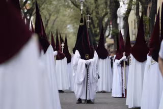Nazarenos del palio de la Virgen de Nuestra Señora de los Dolores de la Hermandad de El Cerro - Joaquin Corchero - Europa Press