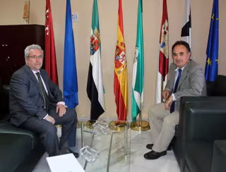 El director general de la Sociedad Estatal Aguas de las Cuencas del Sur (Acuasur), Emilio del Pozo Mariño, organismo dependiente del Ministerio de Agricultura, Alimentación y Medio Ambiente, se ha reunido este lunes con el presidente de la Confederación Hidrográfica del Guadalquivir, Manuel Romero Ortiz, en la sede del Organismo de cuenca en Sevilla, para analizar las diferentes actuaciones que la Sociedad Estatal desarrollan en estos momentos en la cuenca.