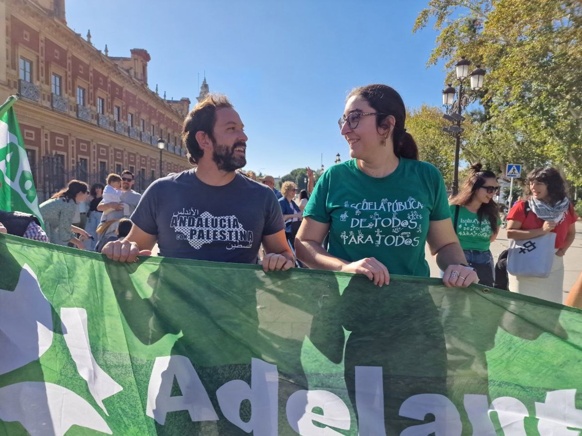 Los portavoces de Adelante Andalucía en Sevilla, Borja Romero y Cristina Hernández, en una reciente manifestación. - ADELANTE ANDALUCÍA