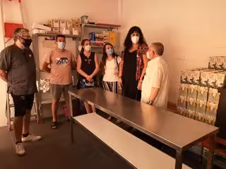 La edil ha visitado el puesto del Mercado de la Candelaria cedido por el gobierno municipal a la asociación y desde el que cada día, como explica la propia Heredia, "se reparten entre 250 y 300 menús para familias sin recursos", pese a que según ha alertado "carece de suministro eléctrico y de agua corriente, lo cual complica mucho la importantísima labor que se realiza".