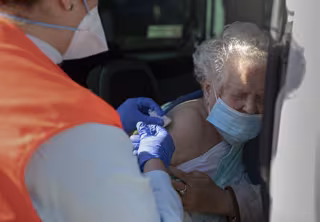Una mujer mayor de 90 años recibe desde el coche la vacuna de Pfizer - María José López - Europa Press