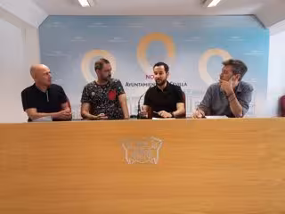 El portavoz de la coalición Adelante Sevilla (IU-Podemos) en el Ayuntamiento, Daniel González Rojas, acompañado del secretario general de Facua en Sevilla, Jordi Castilla; el responsable institucional de CCOO Sevilla, Jorge Lebrón, y del responsable de Comercio de UGT Sevilla, Alberto Luis Martínez Martín, ha criticado el "incumplimiento" del equipo de gobierno municipal en relación a la reforma del Consejo Sectorial de Comercio, ya que "no se ha respetado el principio reclamado por IU y estas organizaciones para garantizar el equilibrio en el Consejo, donde la representación de patronal, por un lado, y sindicatos, consumidores y vecinos, por otro, estuviera compensada".