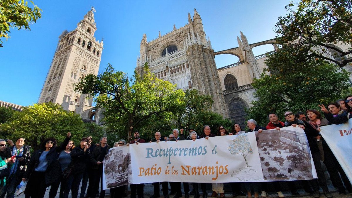Concentración para que el Patio de los Naranjos vuelva a estar abierto al público en una imagen de archivo. - PLATAFORMA EN DEFENSA DEL PATRIMONIO DE SEVILLA