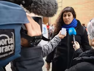 La edil de Adelante Sevilla Sandra Heredia atiende a medios de comunicación, en una imagen de archivo - Adelante Sevilla - Archivo