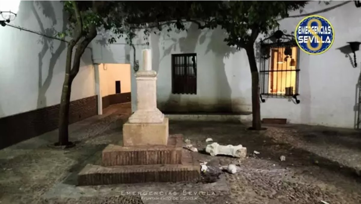 Imagen del crucero de la Plaza de Santa Marta objeto de actos vandálicos. - EMERGENCIAS SEVILLA