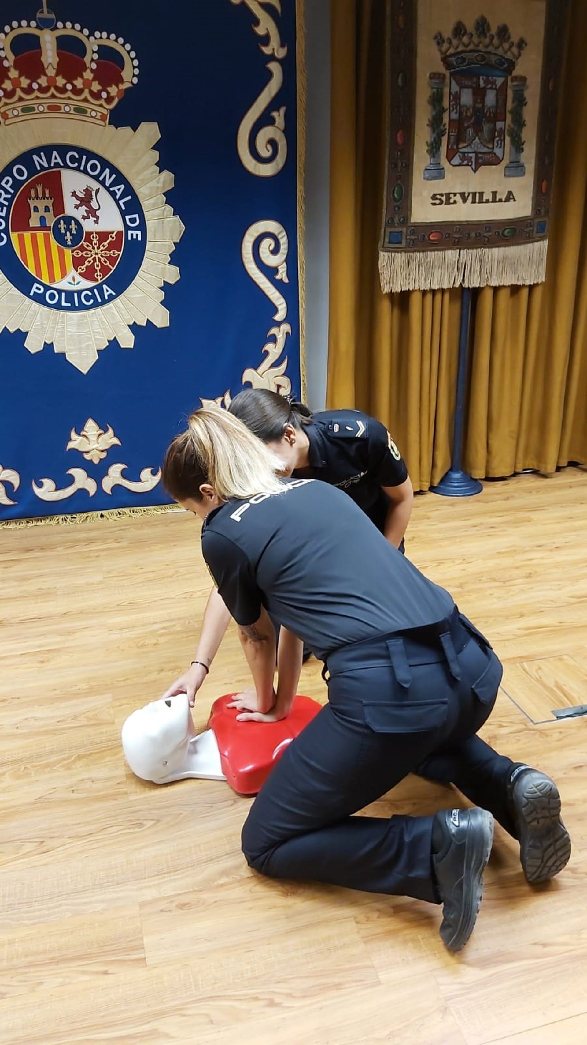 Agentes de la Policía Nacional siendo instruídas en como practicar un RCP - POLICÍA NACIONAL