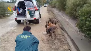 Se trataba de tres perros, un pastor belga malinois, un perro de agua y un mestizo, que se encontraban en el fondo del cauce, "completamente agotados y con las patas lastimadas tras múltiples intentos fallidos de subir por la pendiente de unos dos metros", según informa la Guardia Civil en una nota de prensa.