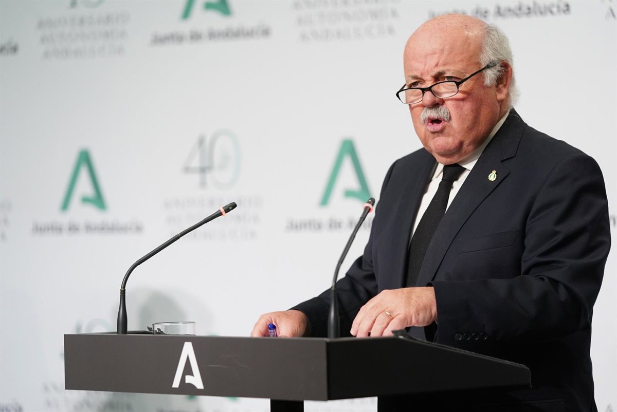 El consejero de Salud y Familias, Jesús Aguirre, en rueda de prensa tras una reunión del Gabinete de Crisis de la Junta por el coronavirus. - JUNTA DE ANDALUCÍA