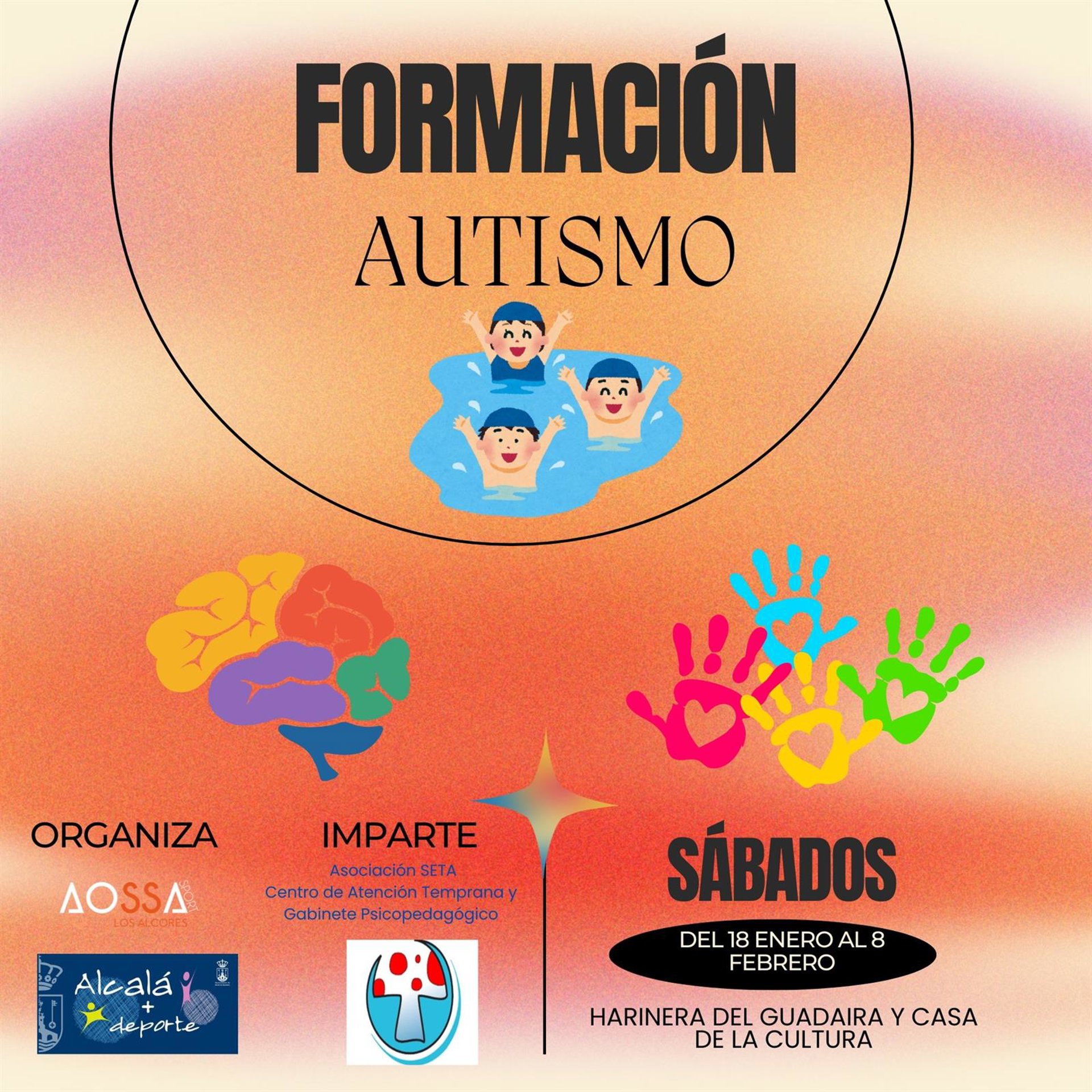 La delegación municipal de Deportes del Ayuntamiento de Alcalá de Guadaíra y Aossa Global SA, organizan en colaboración con la Asociación Seta, Centro de Atención Temprana, un curso de formación sobre el autismo con varias sesiones formativas.