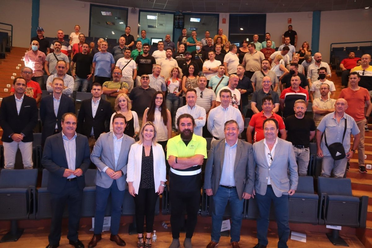 La alcaldesa de Alcalá de Guadaíra, Ana Isabel Jiménez, junto a parte de los delegados municipales y trabajadores de la nueva empresa de limpieza. - AYUNTAMIENTO DE ALCALÁ DE GUADAÍRA.
