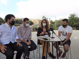 La delegada de Juventud del Ayuntamiento de Alcalá de Guadaíra, Rosa Carro (Cs), junto a tres de los integrantes del grupo D'Dulce ha presentado el concierto por el Día de la Música. - AYUNTAMIENTO DE ALCALÁ DE GUADAÍRA (SEVILLA).
