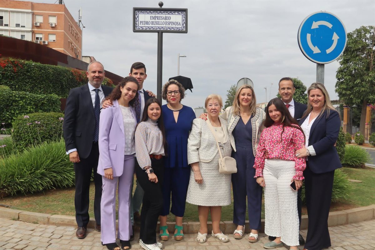 La rotonda Empresario Pedro Rusillo Espinosa ya luce en la avenida 28 de Febrero, en la travesía de la A-392. Este lunes, se ha descubierto la placa con la que se rinde homenaje a un comerciante que, según la alcaldesa de la ciudad, Ana Isabel Jiménez, "fue ejemplo de emprendimiento, de innovación y trabajo constante. Supo anticiparse y lograr el crecimiento de un negocio familiar a base de verdad, de ofrecer el mejor producto y servicio a su numerosa clientela".