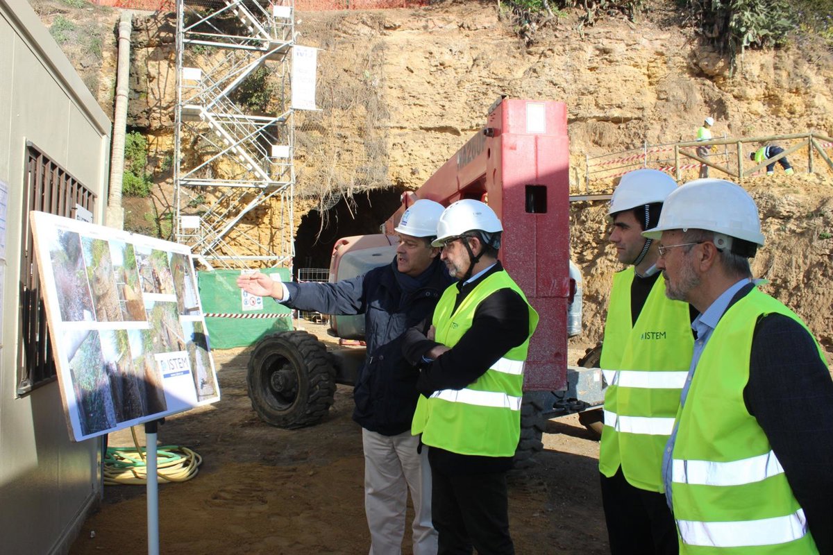 El alcalde de Alcalá de Guadaíra, Antonio Gutiérrez Limones, ha comprobado este martes el avance de las obras del nuevo colector de la calle San Miguel, que permitirá el saneamiento de la misma, en esta barriada del cerro del Castillo alcalareño.