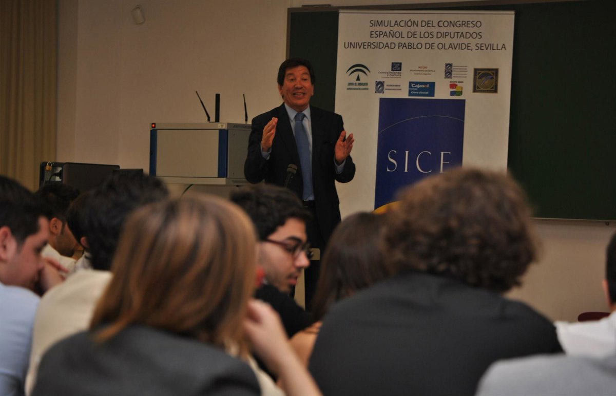 El alcalde de Puerto Real, José Antonio Barroso, ha ofrecido este viernes una conferencia en la Universidad Pablo de Olavide (UPO), en el marco de la III Simulación del Congreso Español (SICE 2011). Barroso ha afirmado que "el origen de la crisis actual está en la manera en que España entró a formar parte de la Unión Europea (UE): de rodillas".