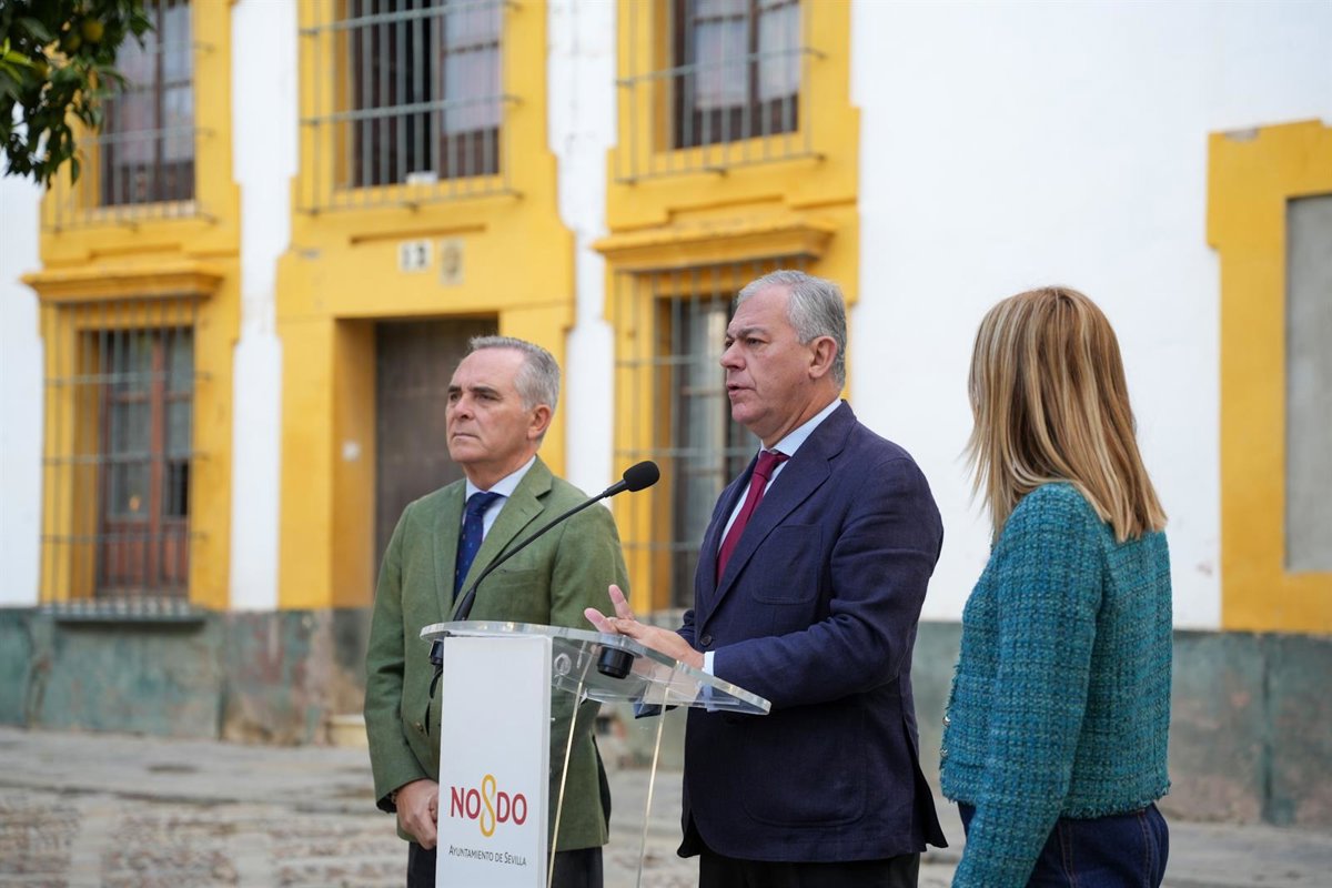 El alcalde de Sevilla, José Luis Sanz, en una atención a medios en el Patio de Banderas de Sevilla. - AYUNTAMIENTO DE SEVILLA