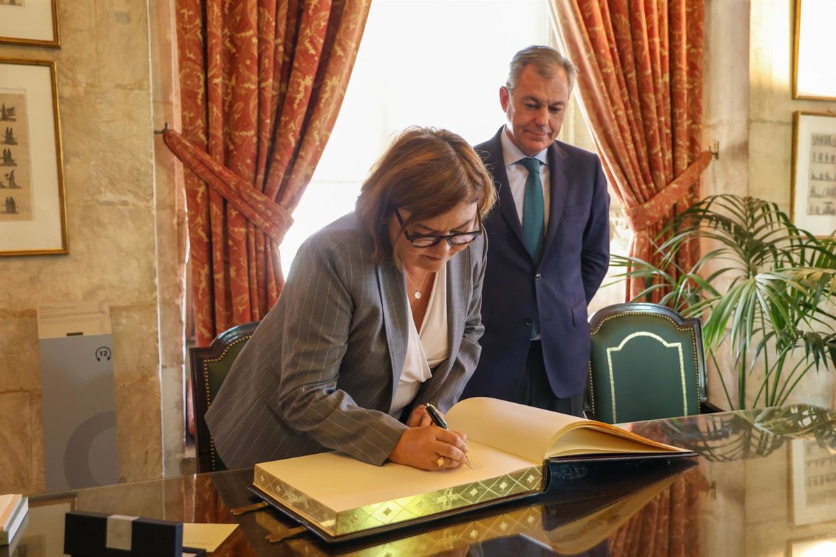 La comisaria de Transportes de la UE firma en el Libro de Honor del Ayuntamiento en presencia del alcalde hispalense. - AYTO.DE SEVILLA