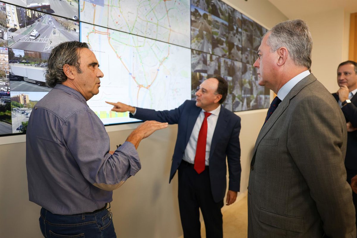 El alcalde de Sevilla, José Luis Sanz, en el nuevo Centro de Gestión de la Movilidad en el edificio Ranilla. - AYUNTAMIENTO DE SEVILLA
