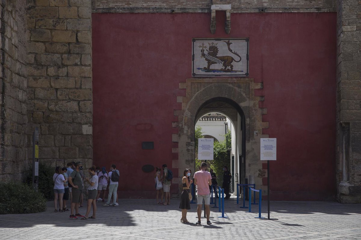 Archivo - Turistas en la entrada al Real Alcázar, en foto de archivo. - María José López - Europa Press - Archivo