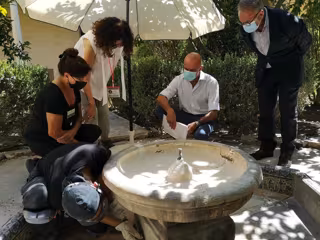 Para proceder a la intervención, el equipo de restauración ha desmontado por completo la fuente y sus elementos cerámicos. Con anterioridad, se han realizado estudios analíticos, geológicos y microbiológicos y un trabajo de documentación, así como pruebas y ensayos de idoneidad de los tratamientos de limpieza y consolidación.