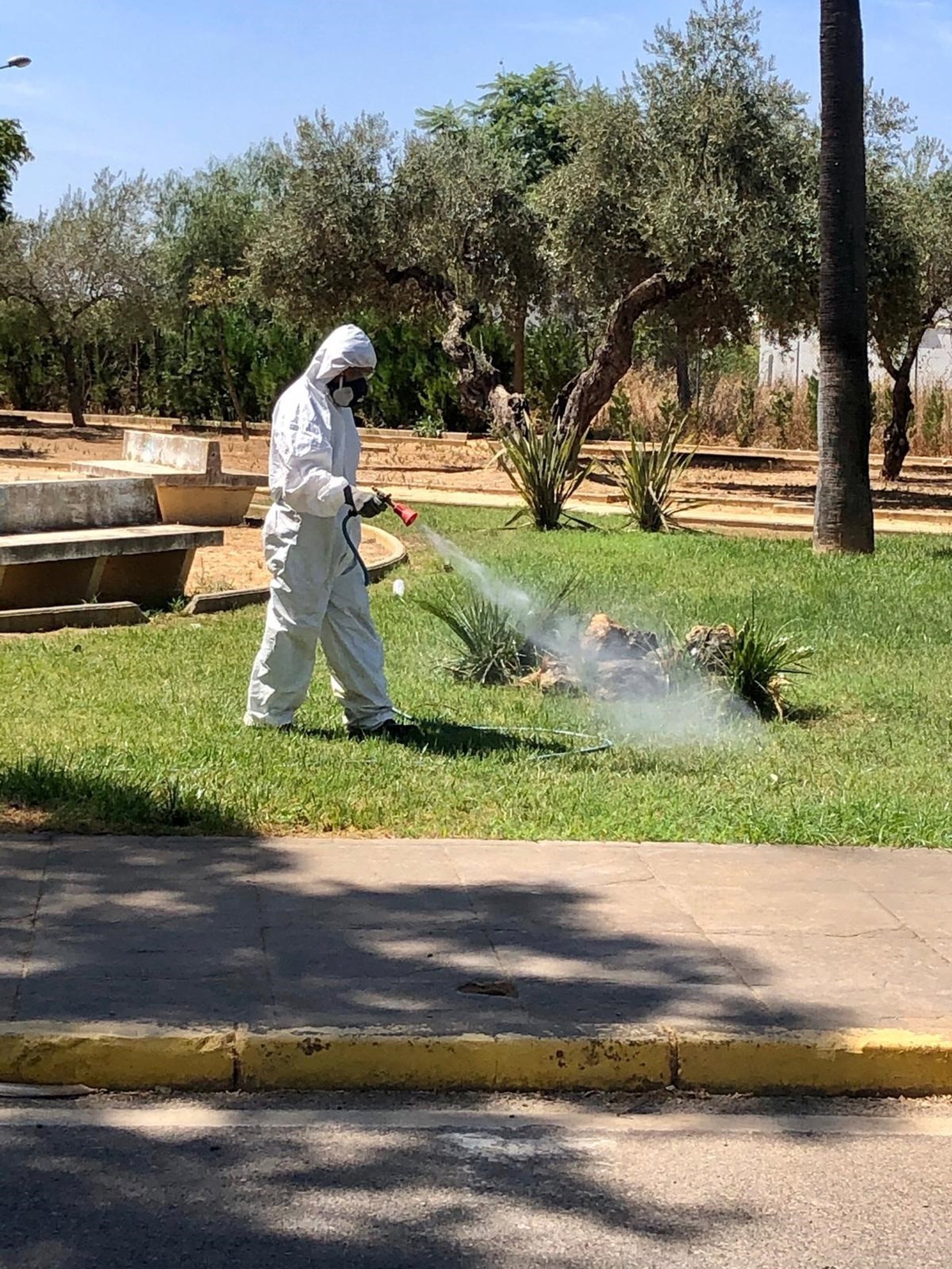 han sido fumigadas las zonas verdes del Pabellón, de la Avenida de Andalucía y los