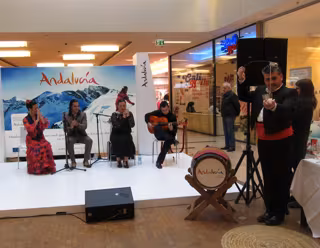 Ejemplo de acción directa al consumidor es la desarrollada a partir de este martes en el centro comercial Arcaden de Düsseldorf, la primera que el Gobierno andaluz lleva a cabo con motivo de la ITB de este año. Flamenco, degustaciones gastronómicas, con un cortador de jamón y un venenciador, y premios como el sorteo de un viaje a Andalucía son algunas de las actuaciones puestas en marcha hasta el jueves con el objetivo de llegar a más de 15.000 alemanes, que se prevé que pasen por este espacio durante estos tres días.