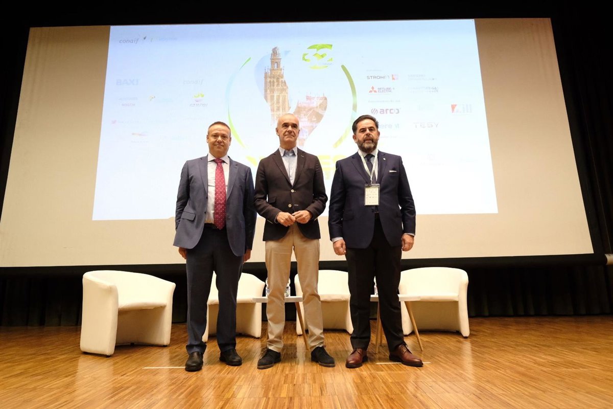 El alcalde de Sevilla, Antonio Muñoz, en el centro de la imagen, ha inaugurado el Congreso de la Confederación Nacional de Asociaciones de Empresas Instaladoras (Conaif), en el Edificio Expo de la Cartuja. - AYUNTAMIENTO DE SEVILLA