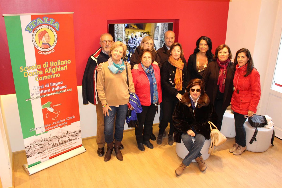 Alumnos del Aula de Mayores de la Universidad Pablo de Olavide (UPO) del municipio sevillano de Tomares realizan una estancia de dos semanas en la ciudad de Camerino para estudiar lengua y cultura italianas, en virtud de un acuerdo entre la universidad sevillana y la Scuola Dante Alighieri, de dicha localidad italiana.